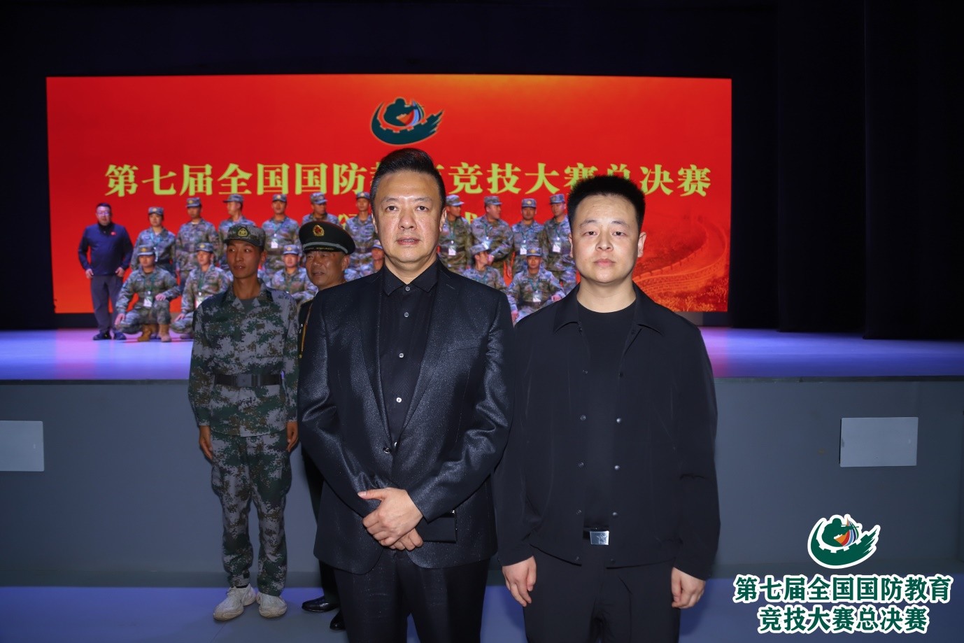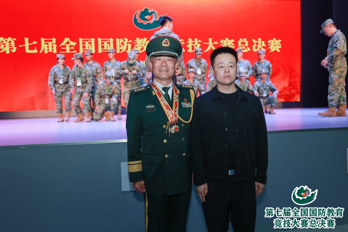 (甘肃省赛区代表队负责人丁鹏与全国国防教育竞技大赛组委会秘书长牛淏屹合影)