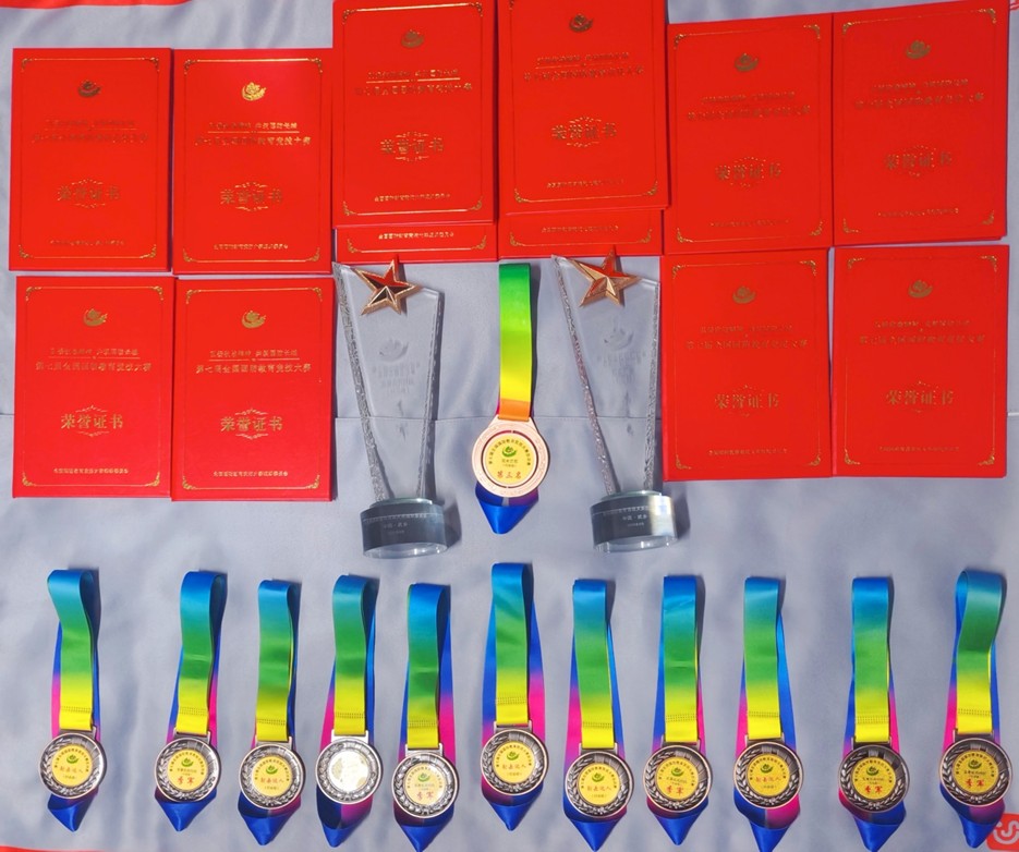 (甘肃省赛区代表队在第七届全国国防教育竞技大赛中所荣获的奖牌、奖杯和证书)