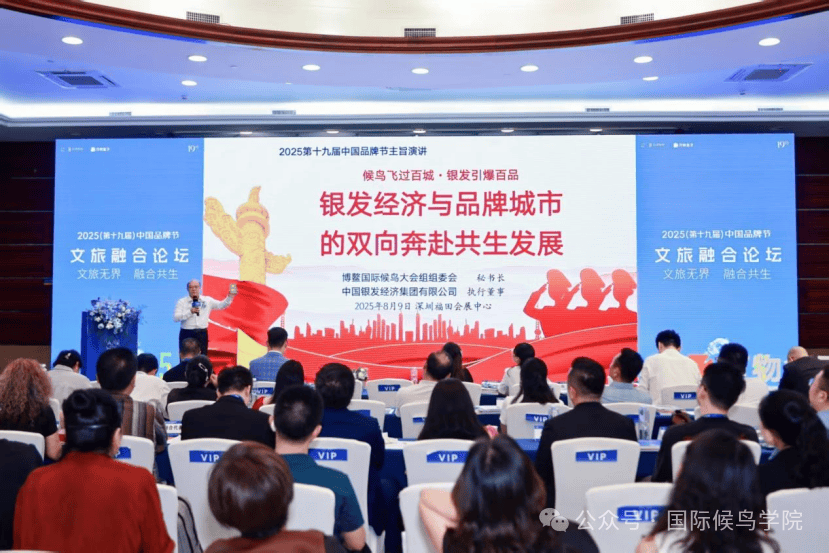银发力量助推品牌城市共建。据悉,早在8月9日,博鳌国际候鸟学院执行院长、中国银发经济研究院执行院长王合成先生,从“避暑避寒避霾”和“养心养生养寿”城市品牌与康养文旅融合角度,发表了题为《银发经济与品牌城市的双向奔赴》热情洋溢的主旨演讲,从理论高度到实际操盘,从未来趋势到实践案例,从城市品牌到个人IP,王院长将自己带团队持续25年从事康养文旅产业的沉淀积累转化为理论与实践生动结合的激情演讲,不仅点亮了2025(第十九届)中国品牌节文旅融合论坛,而且开启了2025博鳌国际候鸟银发人才大会暨鄱阳湖国际候鸟经济论坛。