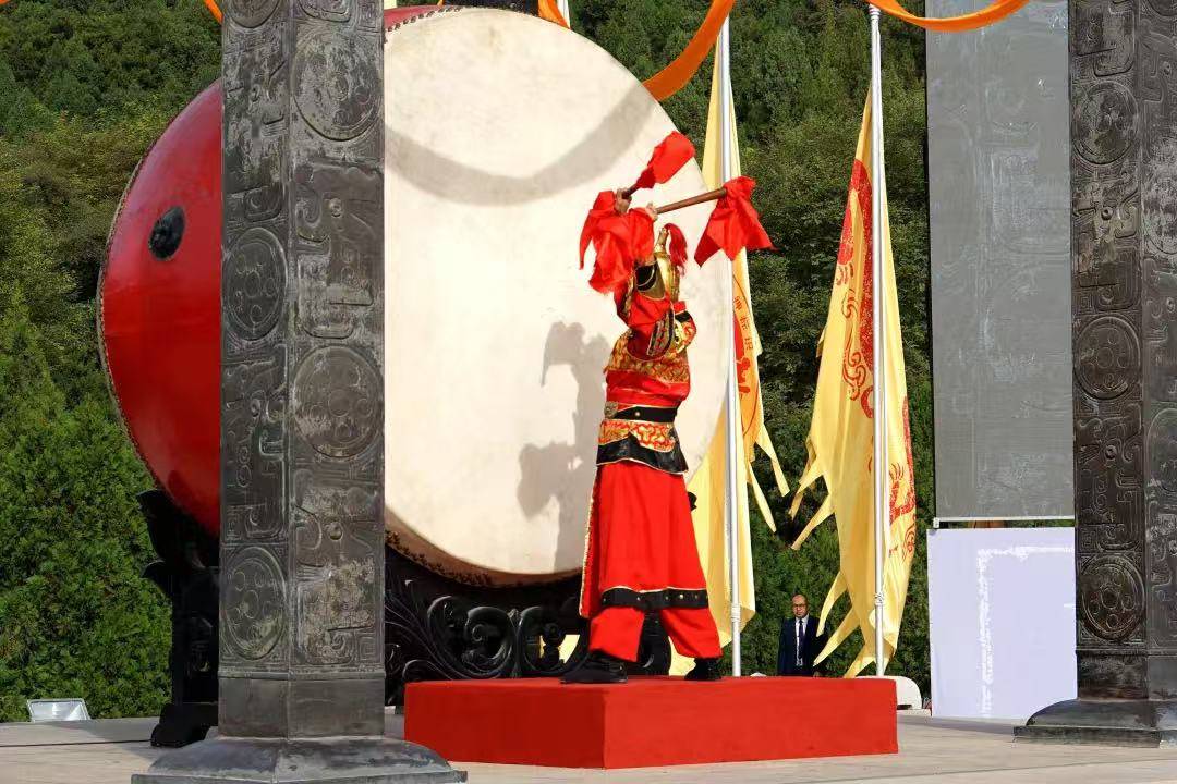 上午9点50分,民祭活动正式开始。击鼓九嗵,鸣钟九响,寓意九九重阳,九九归一,九州和谐。随后,金号三匝,大铜三发,大乐三作,细乐三吹,编钟三奏,鼓乐齐鸣。