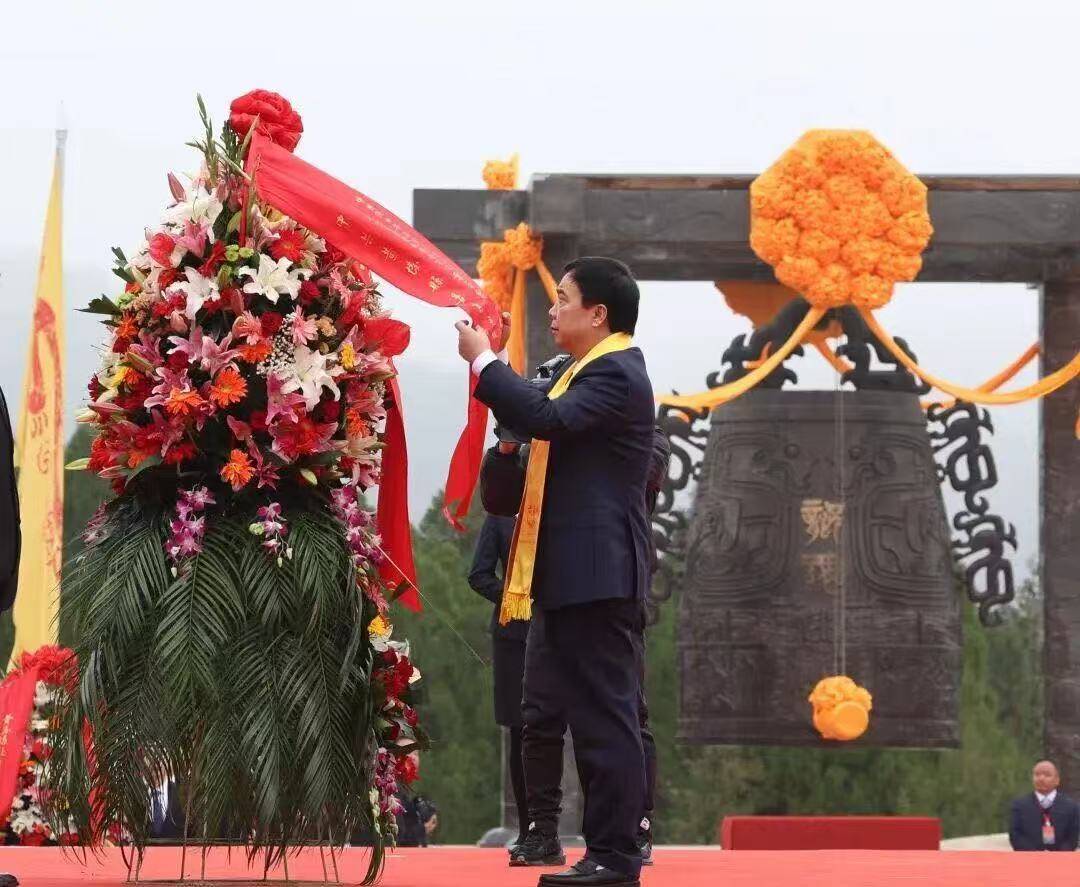 中共陕西省委黄帝陵文化园区工作委员会书记、陕西省黄帝陵文化园区管理委员会主任、陕西省公祭黄帝陵工作委员会办公室主任、黄陵县委书记刘矿平,代表守陵儿女敬献花篮。