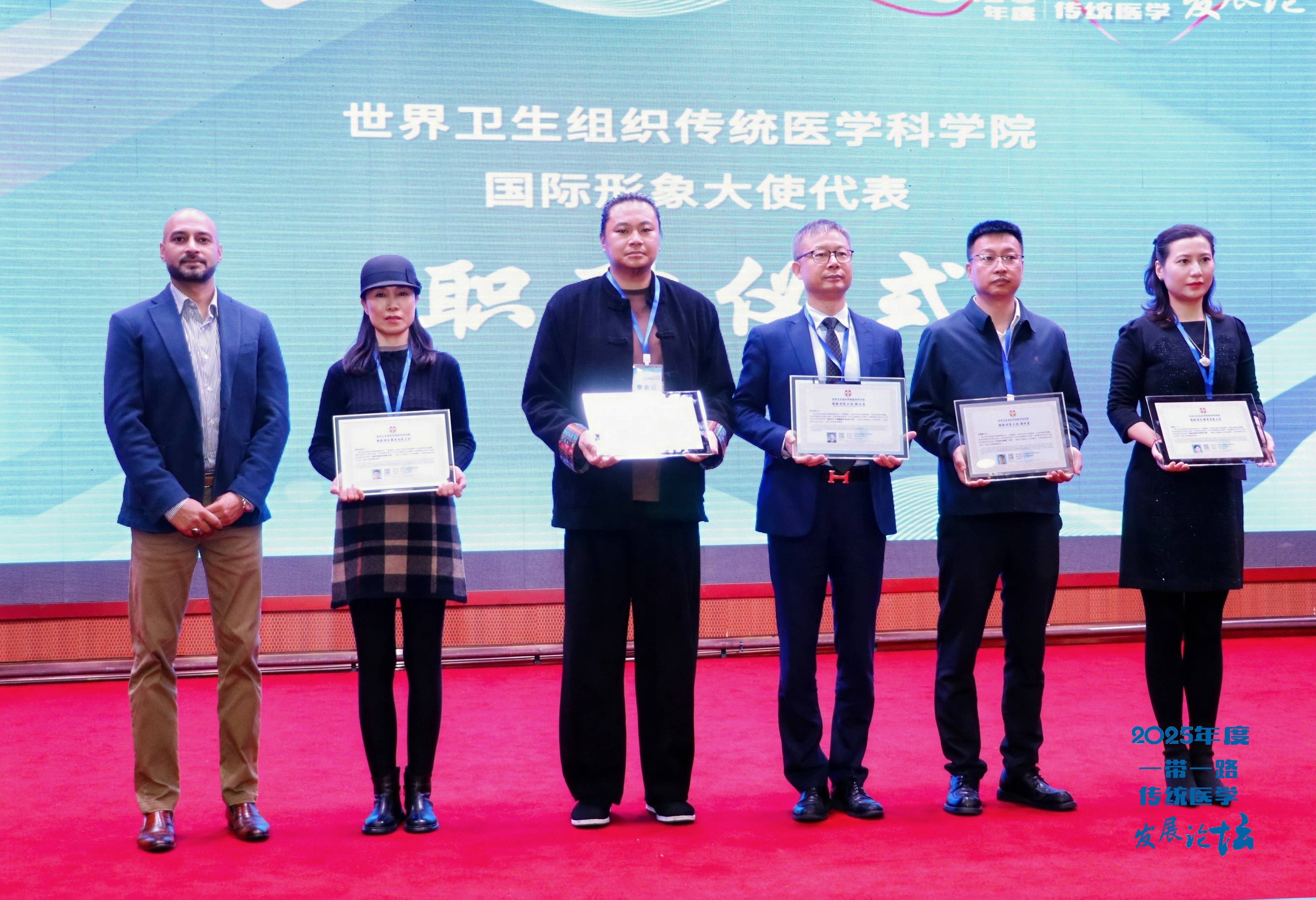 本次论坛同时举行世界卫生组织传统医学科学院国际形象大使授聘仪式,全球战略合作商及基地授牌,为“一带一路”传统医学发展论坛“突出贡献人物”,“突出贡献企业”颁奖。